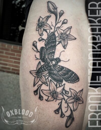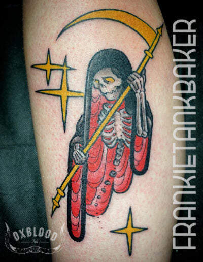 A tattooer with over a decade of experience, Frankie’s distinctive style is rooted in traditional techniques but draws from many other art forms.