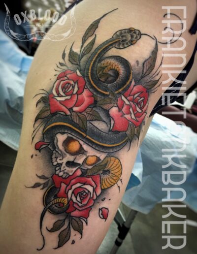 Frankie has been with OxBlood Ink since the beginning. A tattooer with over a decade of experience, Frankie’s distinctive style is rooted in traditional techniques but draws from many other art forms.
